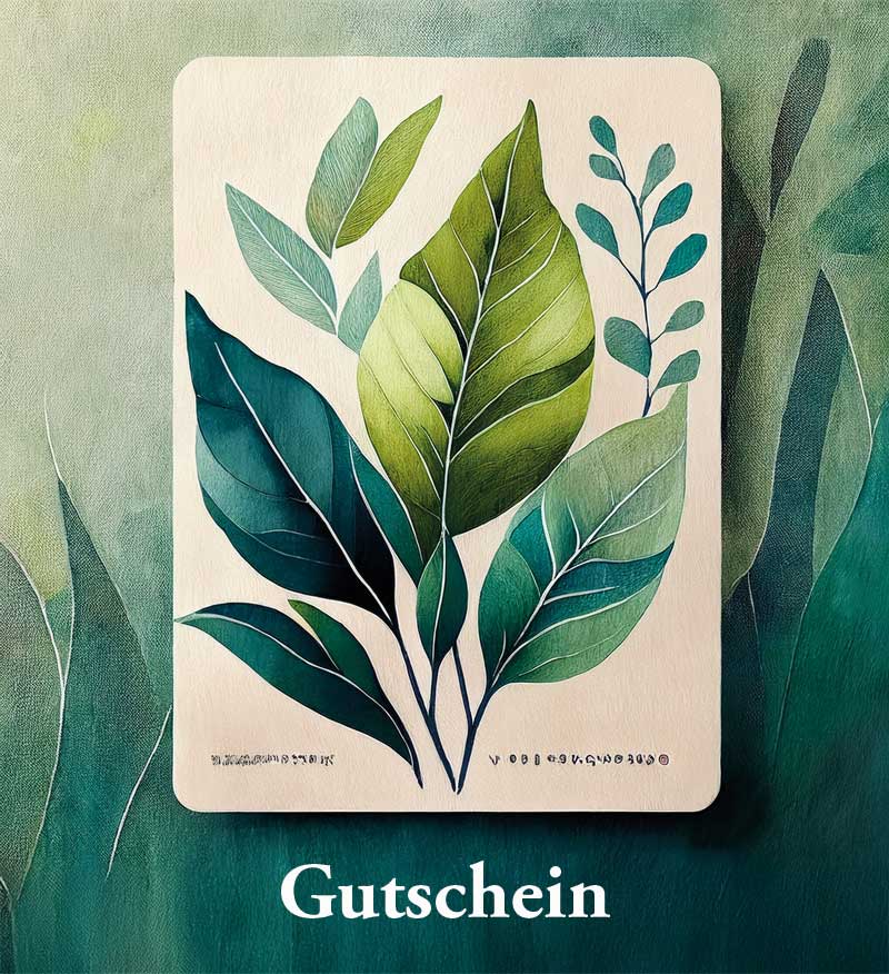 wer bis zum 21.12. einen digitalen Gutschein kauft und bezahlt bekommt auf Wunsch (einfach im Kaufabschluss in die Bemerkungen schreiben) eine Karte mit Pflanzendruck mit eingetragenem Gutscheincode kostenlos dazu. Zum unter den Baum legen.